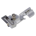 縁かがりと同時にゴムテープを簡単に縫い込むことができます。衿ぐりや袖口などに使えます。