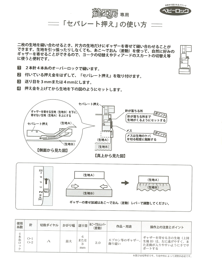 ベビーロック 縫工房 セパレート押えの使用方法