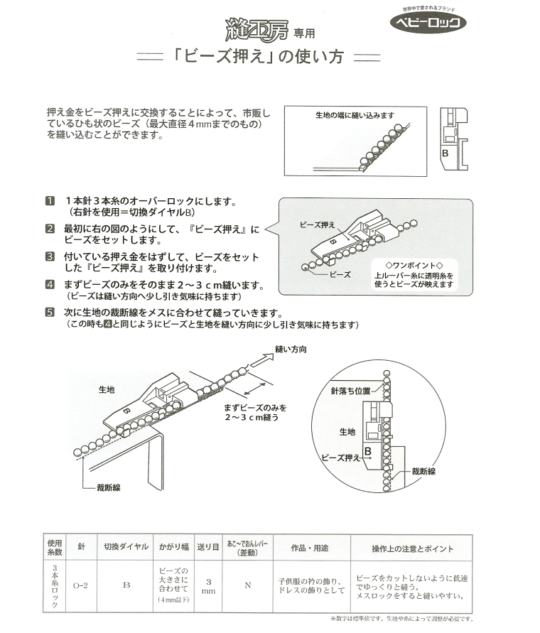 ベビーロック 縫工房 ビーズ押えの使用方法