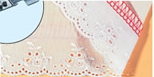 ゴム入れ![]() テグス入れ ![]() | ゴム押え(テグス入れ兼用)使用 縁かがりと同時に市販のゴムテープを縫い込むことができます。水着やショーツ作りに便利です。テグスをいれることもできます。 詳しい使用方法はこちら メーカー希望価格3,000円(税別途) ご注文はこちらから |